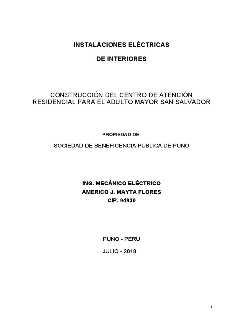El presente proyecto tiene como objetivo el diseño de las Instalaciones Eléctricas y sistemas
