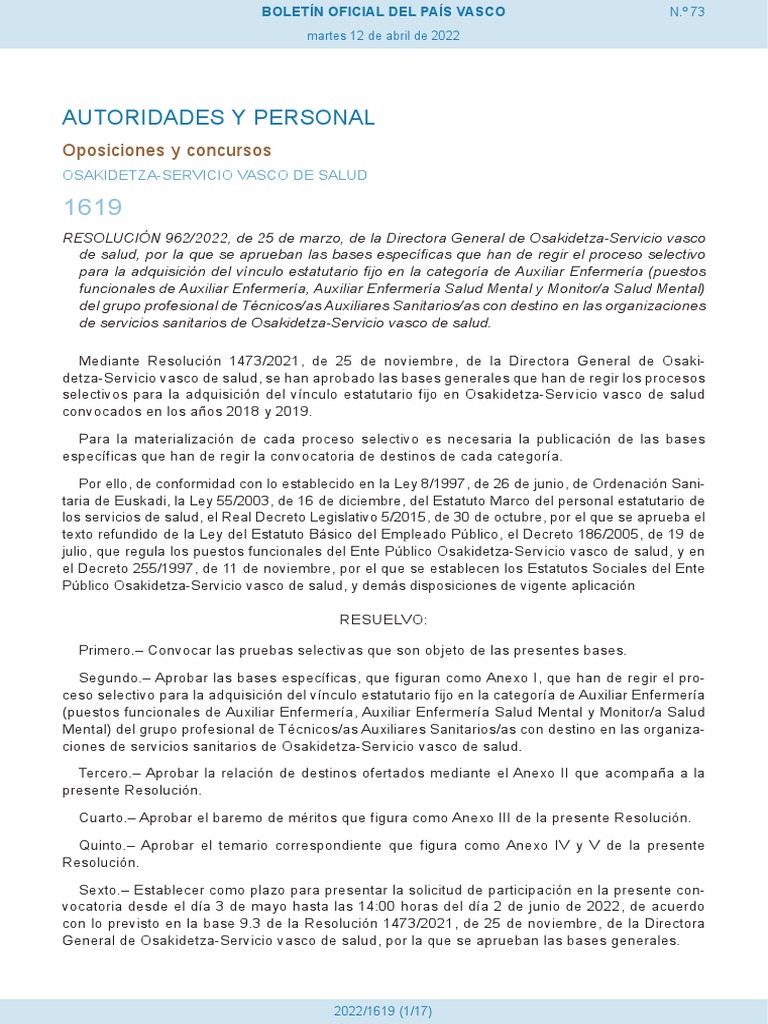 vés de la página web de Osakidetza-Servicio vasco de salud se publicará la presente Resolución