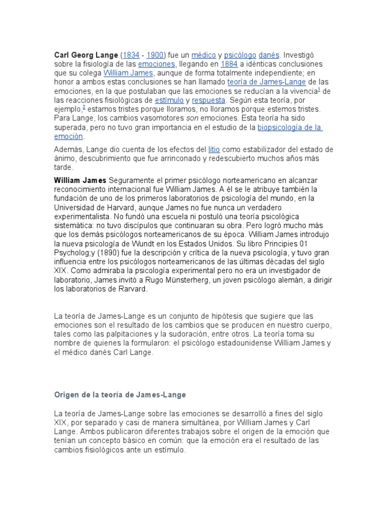 Lange. Ambos publicaron diferentes trabajos sobre el origen de la emoción que