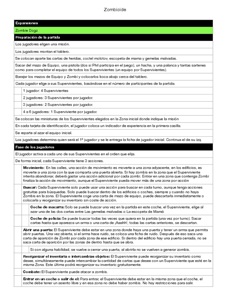 intenta abandonar, deberá gastar una acción adicional por cada zombi. Entrar en una zona que contenga Zombi