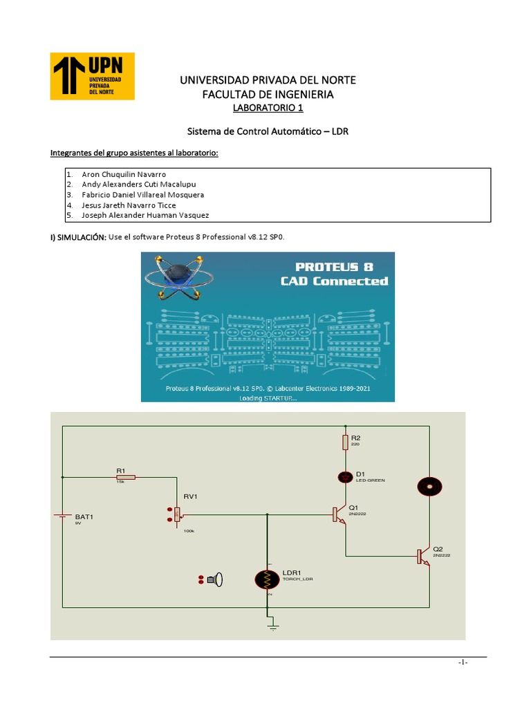 I) SIMULACIÓN: Use el software Proteus 8 Professional v8.12 SP0.