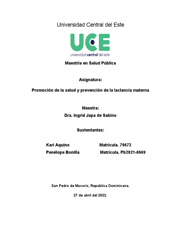 beneficios para la salud de los lactantes y las madres. Este estudio pretende determinar la