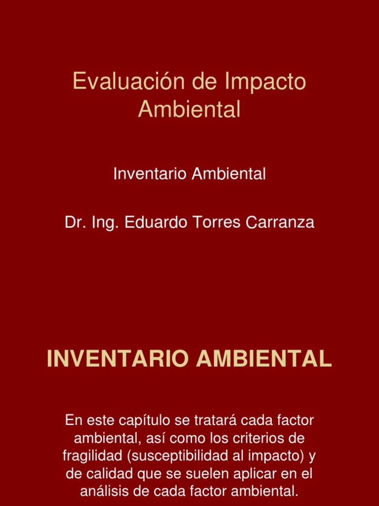 • La función del inventario ambiental es caracterizar el