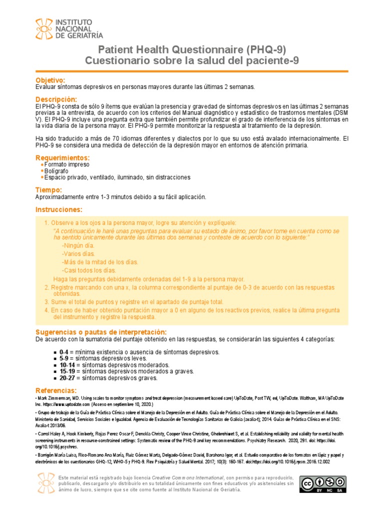 El PHQ-9 consta de sólo 9 ítems que evalúan la presencia y gravedad de síntomas depresivos en las últimas 2 semanas