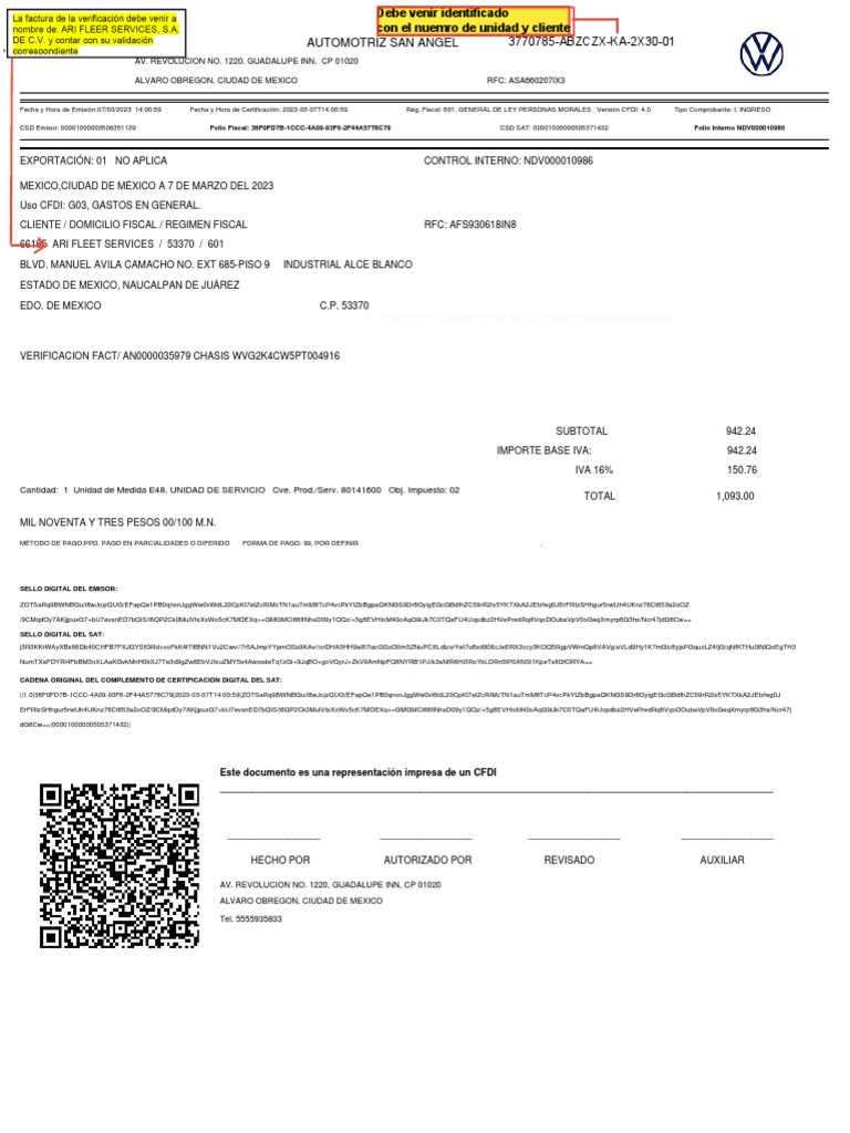 VERIFICACION FACT/ AN0000035979 CHASIS WVG2K4CW5PT004916