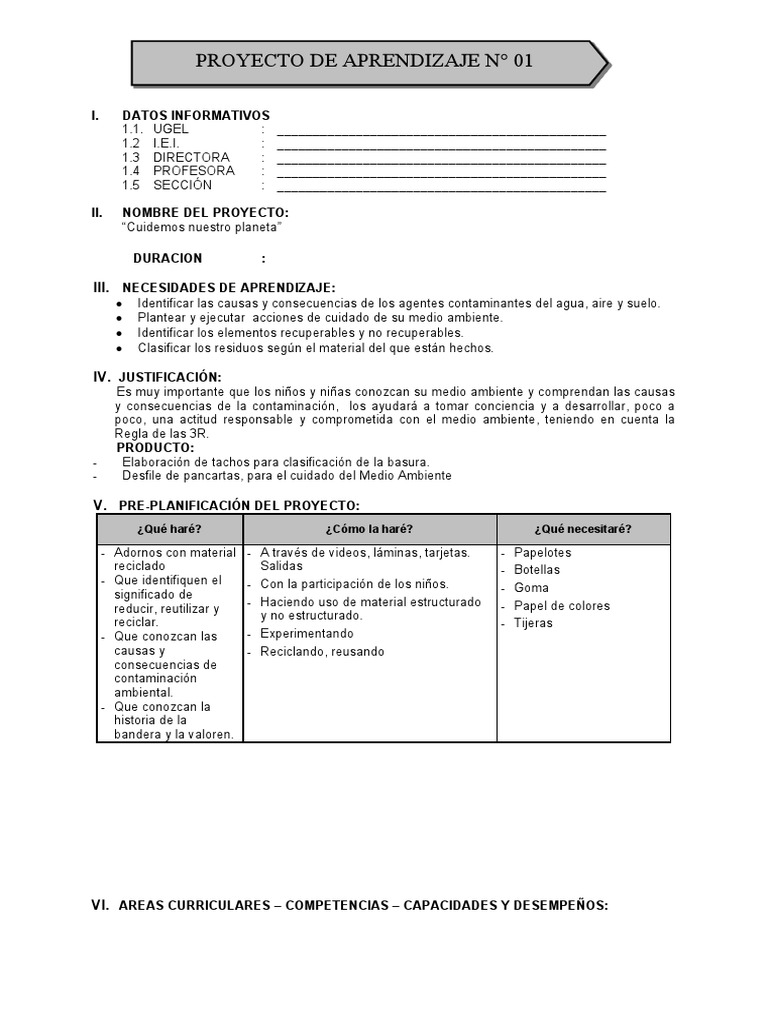 PROYECTO DE APRENDIZAJE N° 01