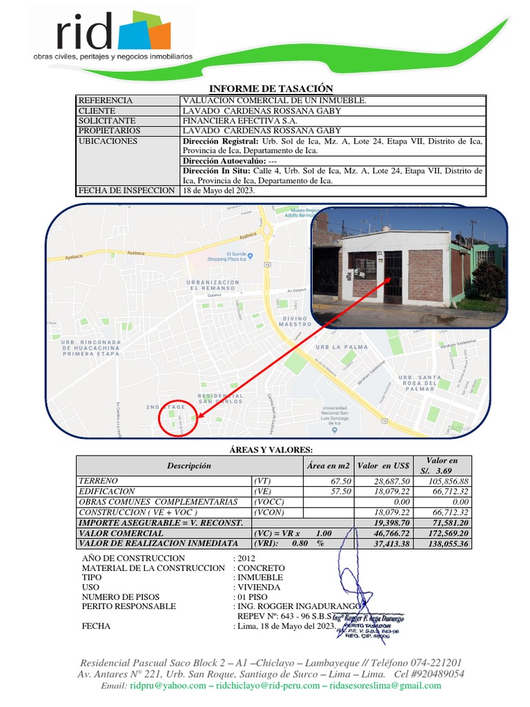 El presente informe fue solicitado por la Financiera Efectiva S.A., Oficina ubicada en Av. El Derby