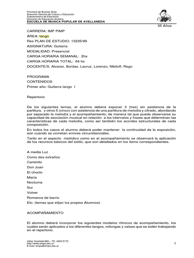 Primer año: Guitarra tango I