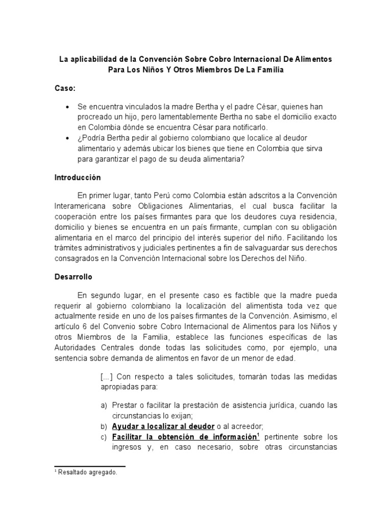 La aplicabilidad de la Convención Sobre Cobro Internacional De Alimentos