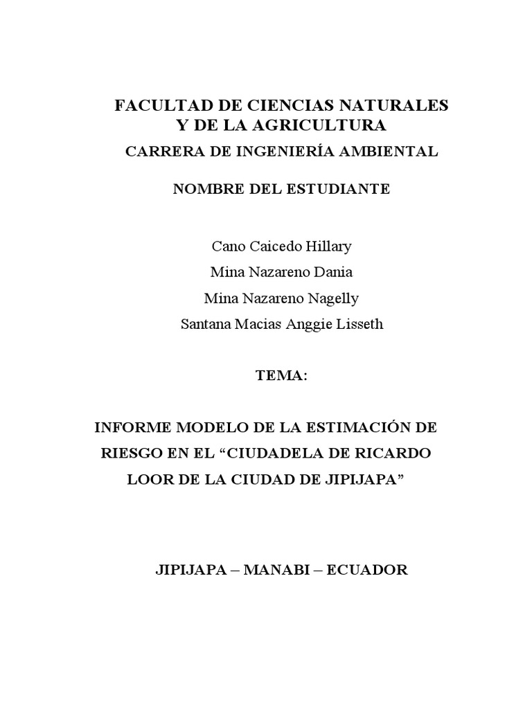 Describir el informe de la Estimación de Riesgos del ciudadela Ricardo Loor de la