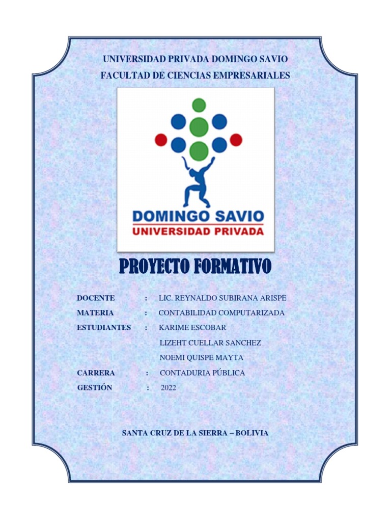 MATERIA : CONTABILIDAD COMPUTARIZADA