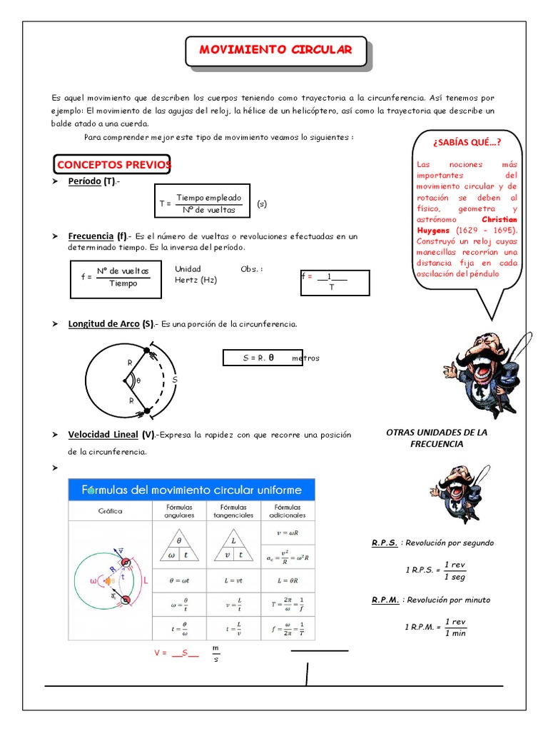 2. Una rueda da 50 vueltas en 5 segundos. 10. Un cuerpo que gira a rapidez constante y