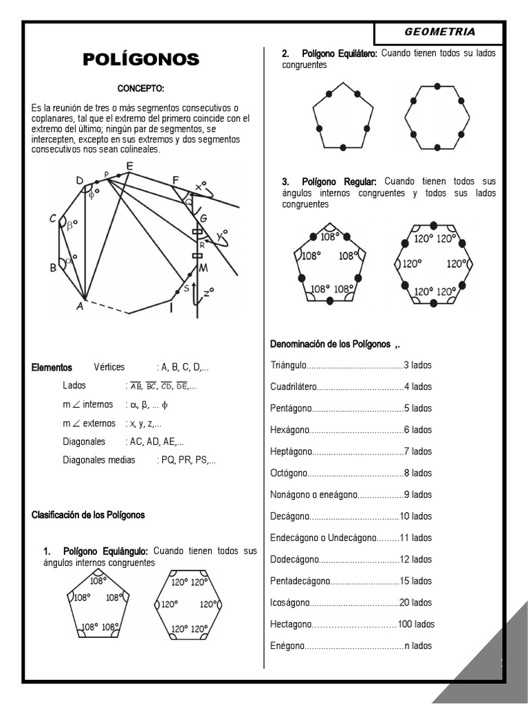 Elementos Vértices : A, B, C, D,... Triángulo........................................3 lados