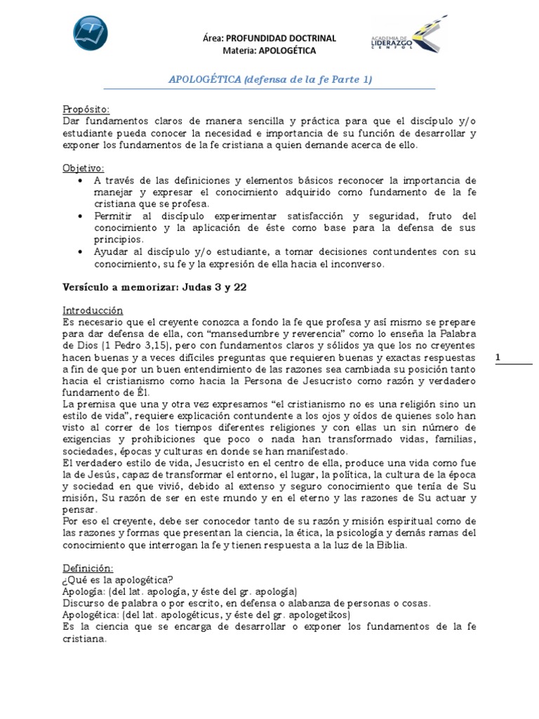desarrollar a través del concienzudo estudio y conocimiento, una apologética