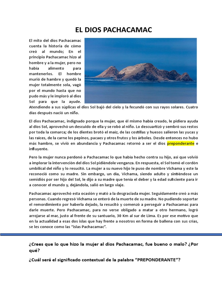 ¿Crees que lo que hizo la mujer al dios Pachacamac, fue bueno o malo? ¿Por
