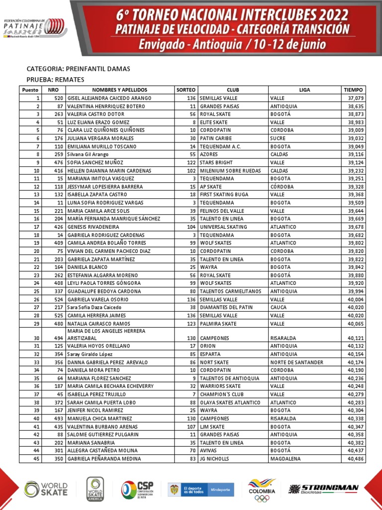 88 368 VALERIA ISABEL RODRIGUEZ RODRIGUEZ 87 COLORADOS SKATE ATLANTICO 45,313