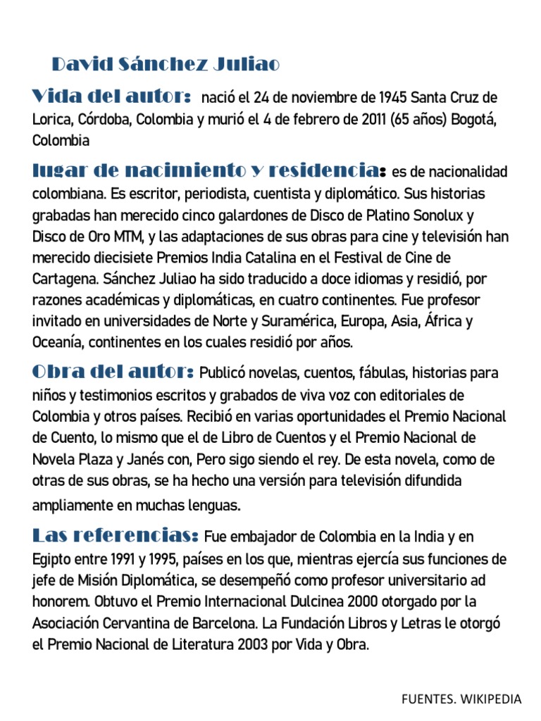 colombiana. Es escritor, periodista, cuentista y diplomático. Sus historias
