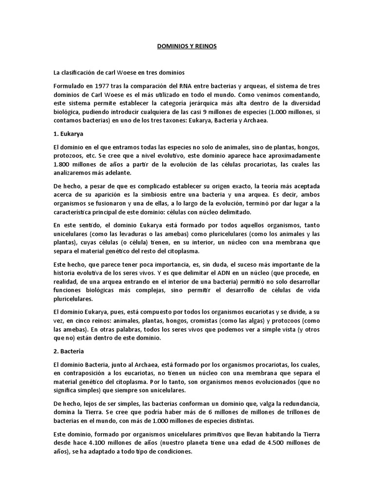 dominios de Carl Woese es el más utilizado en todo el mundo. Como venimos comentando,