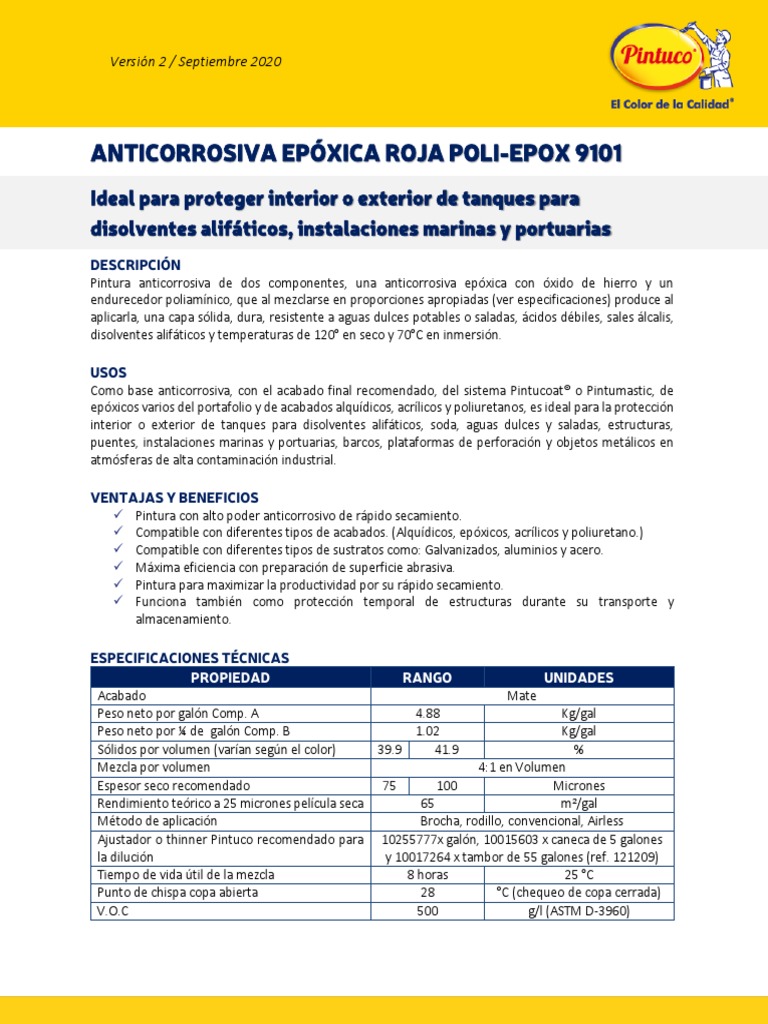 Anticorrosiva Poli-Epox Ref. 9101 y el Catalizador Ref. 9800 de Pintuco en inmersión o en condiciones