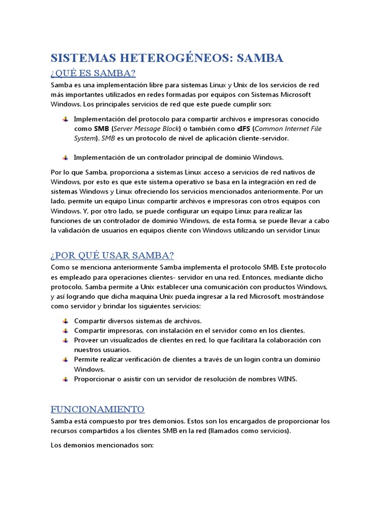 Samba es una implementación libre para sistemas Linux y Unix de los servicios de red