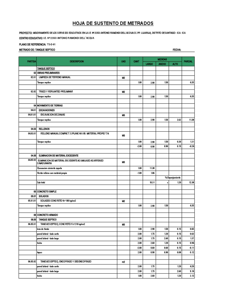 METRADO DE: TANQUE SEPTICO