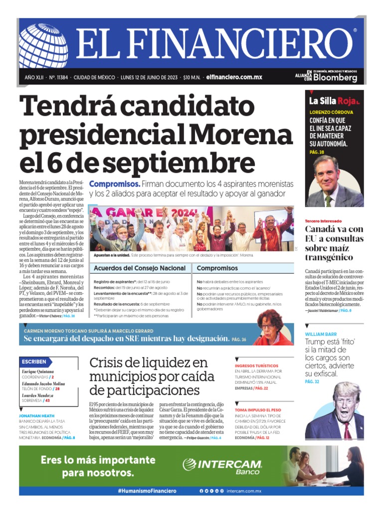 CONSULTOR/DIRECTOR El Financiero, publicado de Lunes a Viernes, impreso el Lunes 12 de Junio de 2023, editado por Grupo Multimedia Lauman, S.A.P.I. de C.V. Calle Lago Bolsena 176, Col. Anáhuac, Delegación Miguel Hidalgo, C.P. 11320, Tel. 55-5227-76-00, [Link] y elfinanciero@[Link]. Editor responsable: Enrique