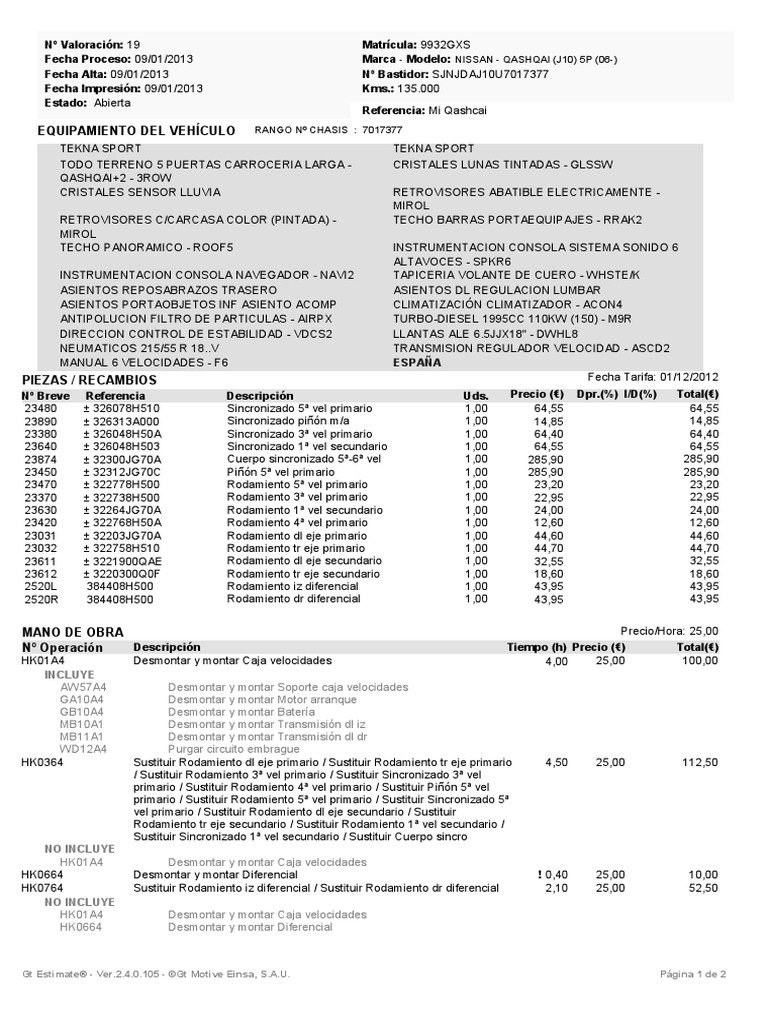 Gt Estimate® - Ver.[Link] - ©Gt Motive Einsa, S.A.U. Página 1 de 2