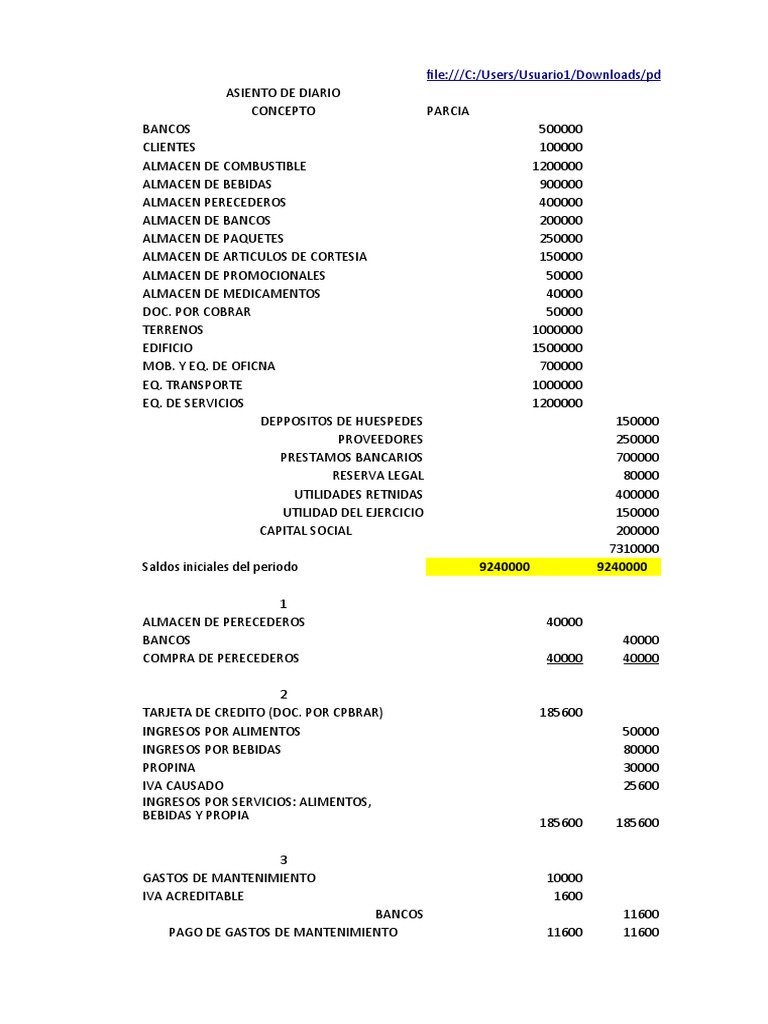 Saldos iniciales del periodo 9240000 9240000