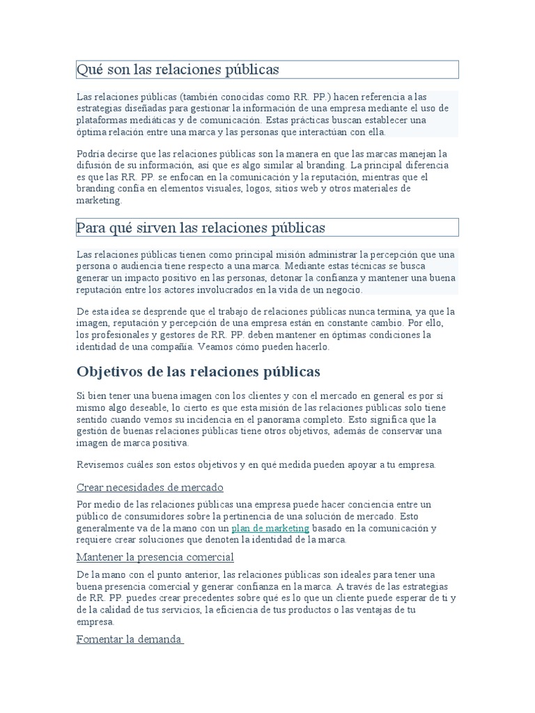 mismo algo deseable, lo cierto es que esta misión de las relaciones públicas solo tiene