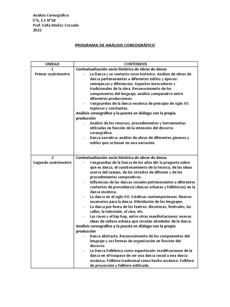Primer cuatrimestre - La Danza y su contexto socio histórico. Análisis de obras de