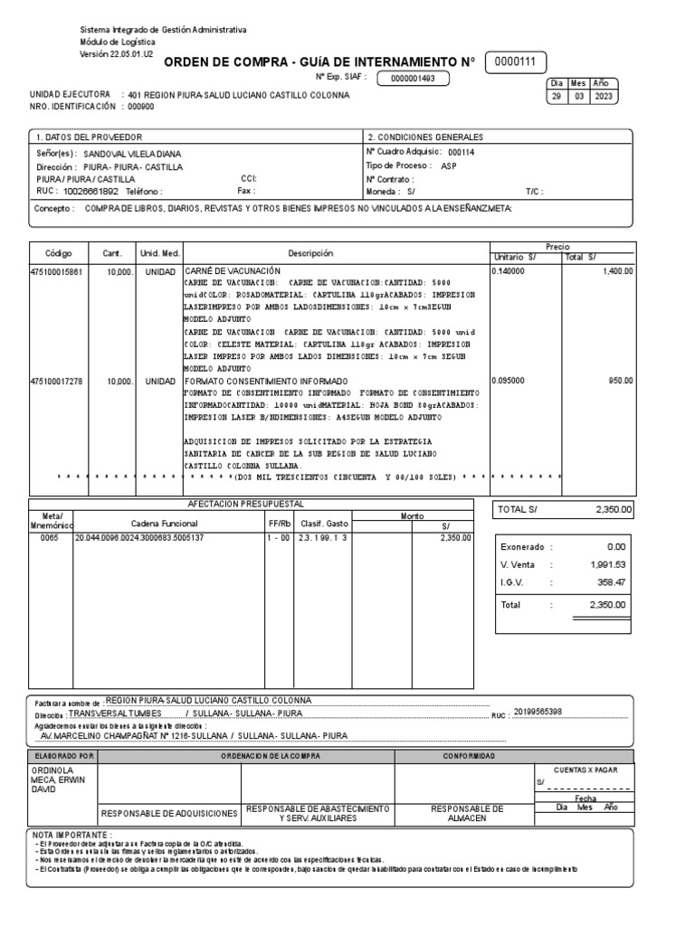 UNIDAD EJECUTORA : 401 REGION PIURA-SALUD LUCIANO CASTILLO COLONNA 29 03 2023