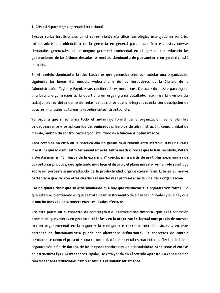 Crisis del paradigma gerencial tradicional