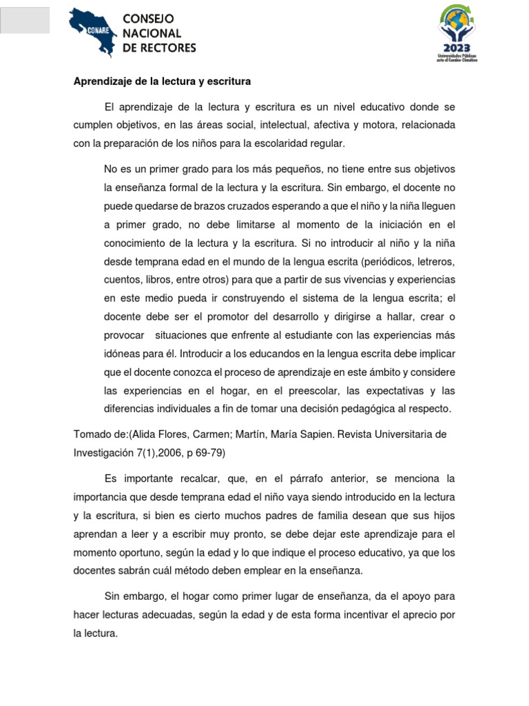 la enseñanza formal de la lectura y la escritura. Sin embargo, el docente no
