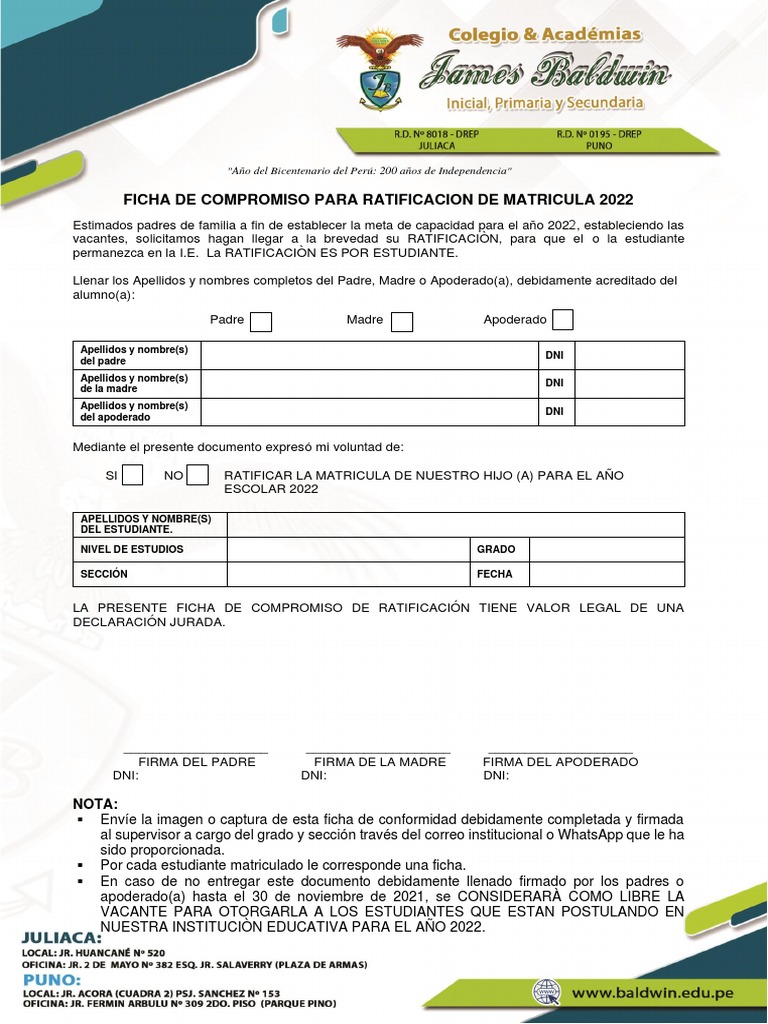FICHA DE COMPROMISO PARA RATIFICACION DE MATRICULA 2022