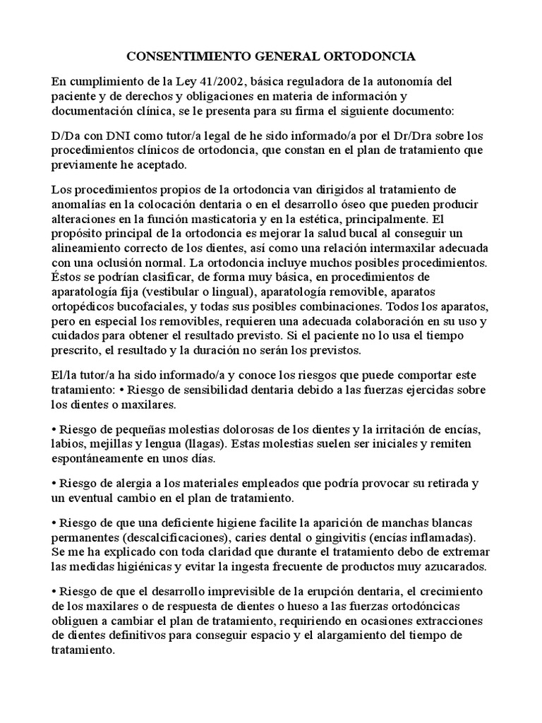 CONSENTIMIENTO GENERAL ORTODONCIA