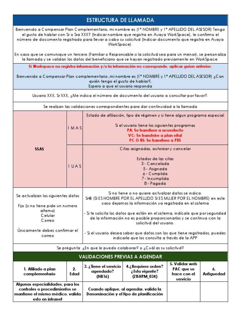 la llamada y se validan los datos del beneficiario que se hayan registrado previamente en WorkSpace.