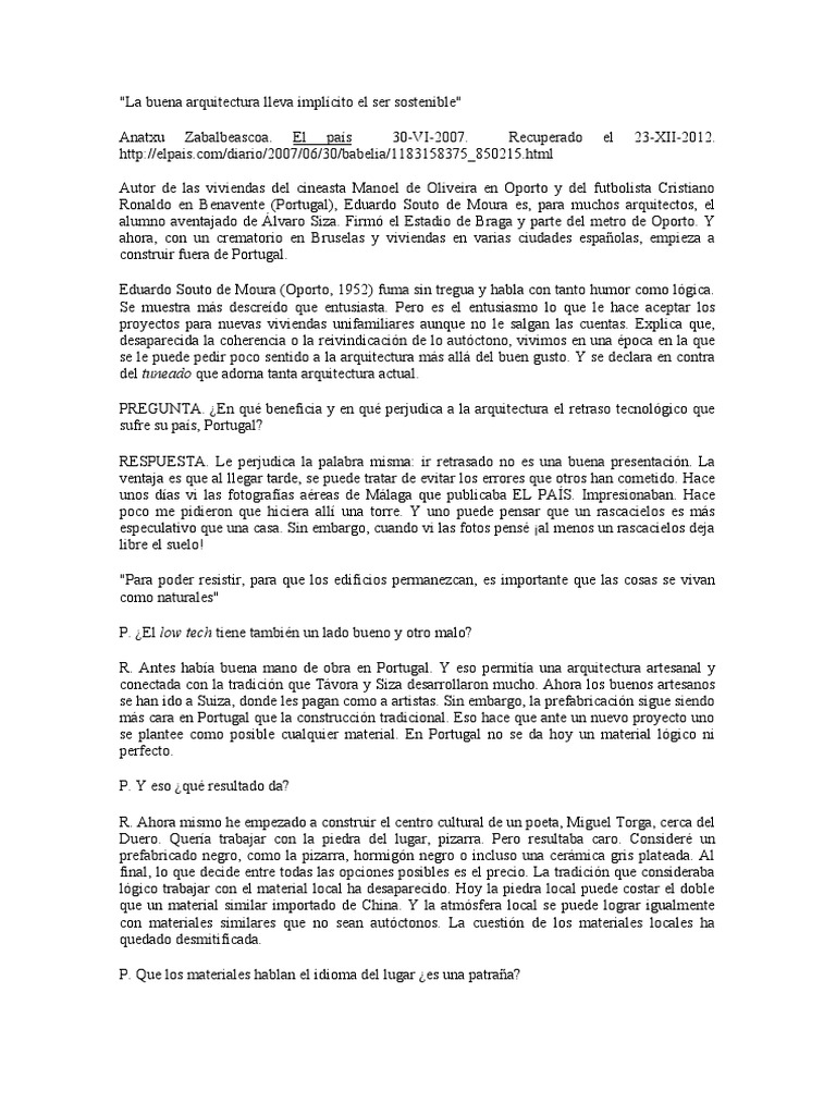 arquitectura no tiene que ser sostenible. La arquitectura, para ser buena, lleva implícito el ser