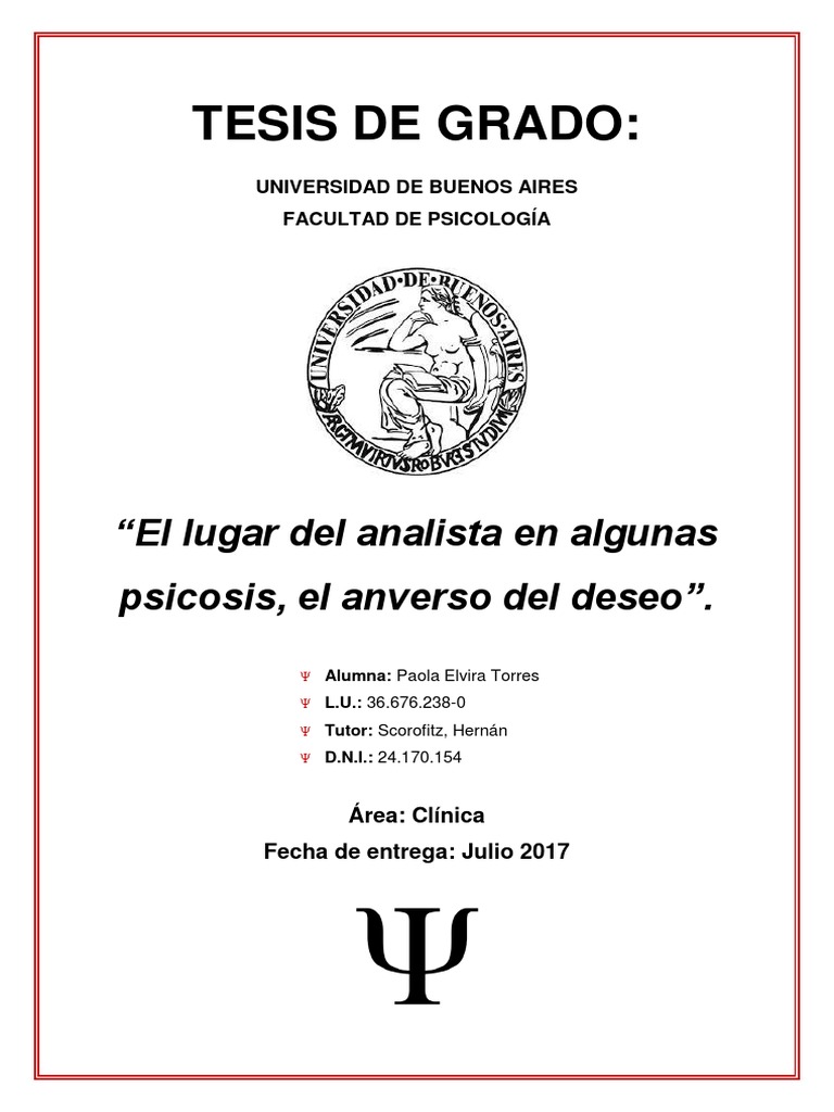 Tesis de Grado:: "El Lugar Del Analista en Algunas Psicosis, El Anverso Del Deseo"