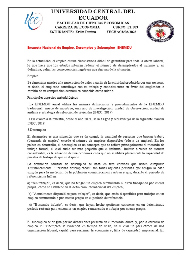 2013). A fin de mejorar la medición del trabajo en Ecuador y extender el entendimiento de este