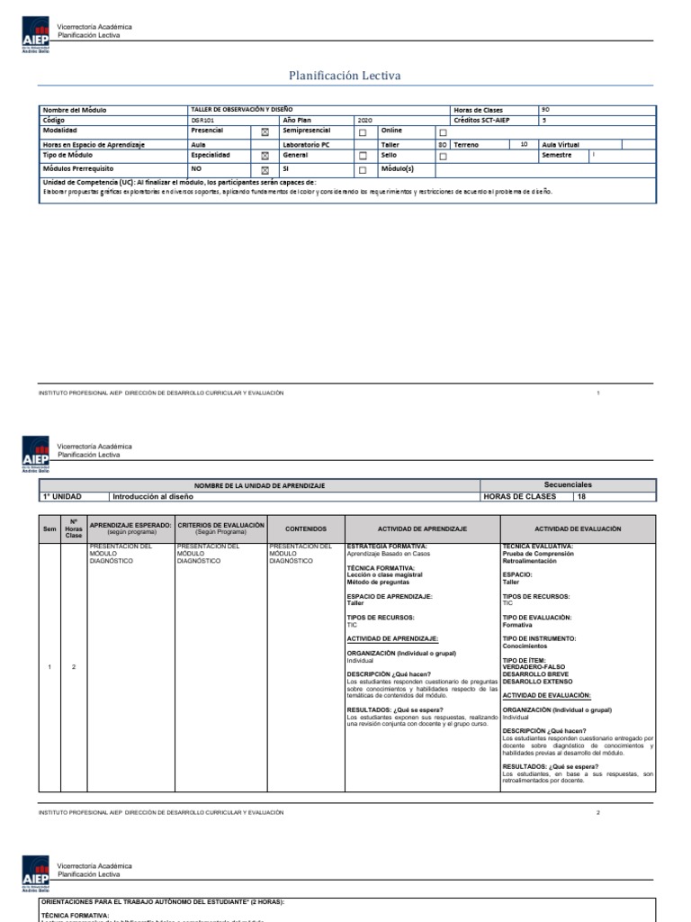 Planificación Lectiva