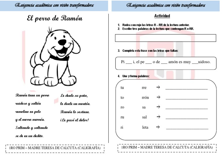 1. Rodea con rojo las letras R – RR de la lectura anterior.