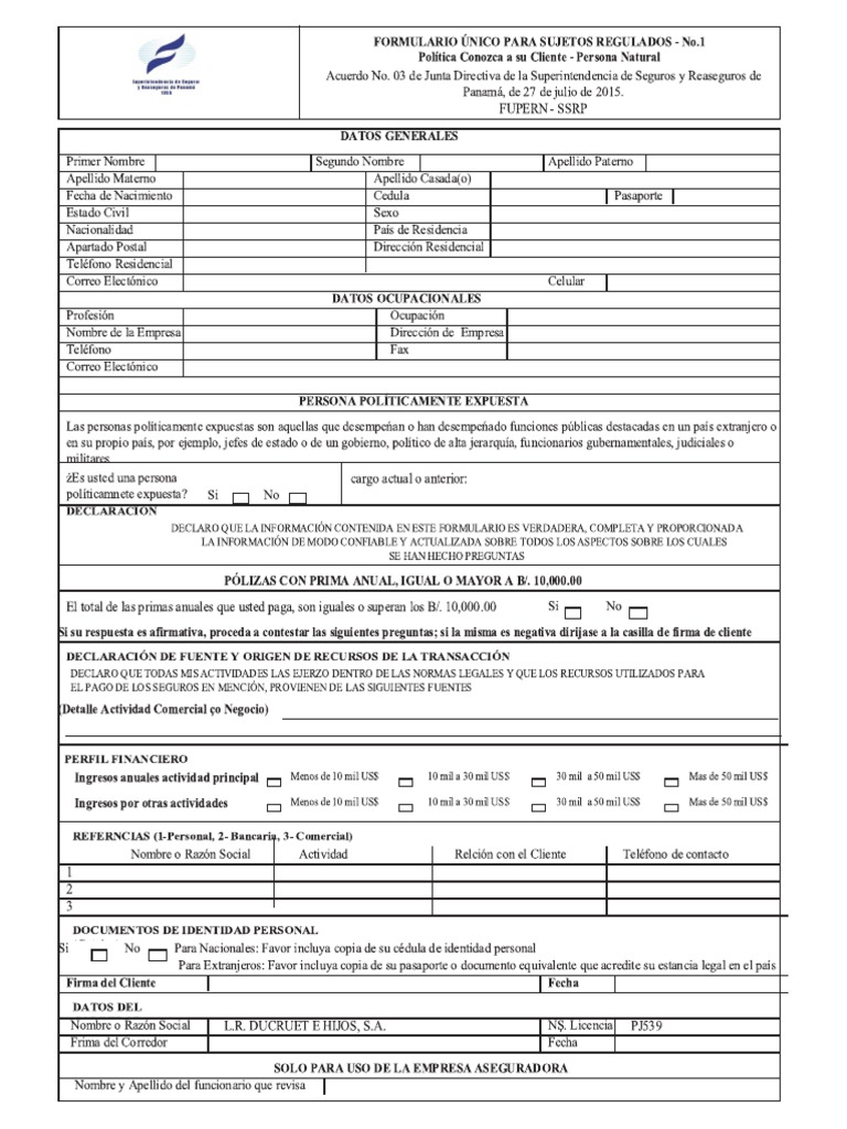 FORMULARIO UNICO PARA SUJETOS REGULADOS - No.1