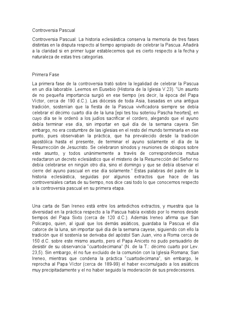 a la controversia pascual en su primera etapa.