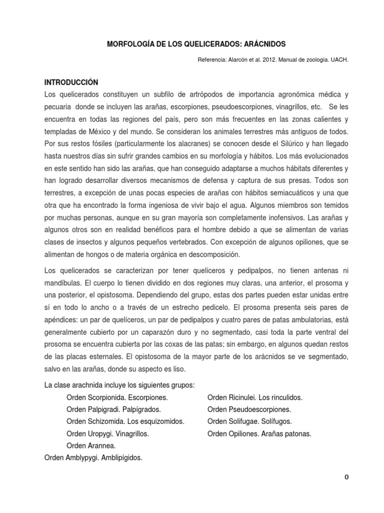 Los quelicerados constituyen un subfilo de artrópodos de importancia agronómica médica y