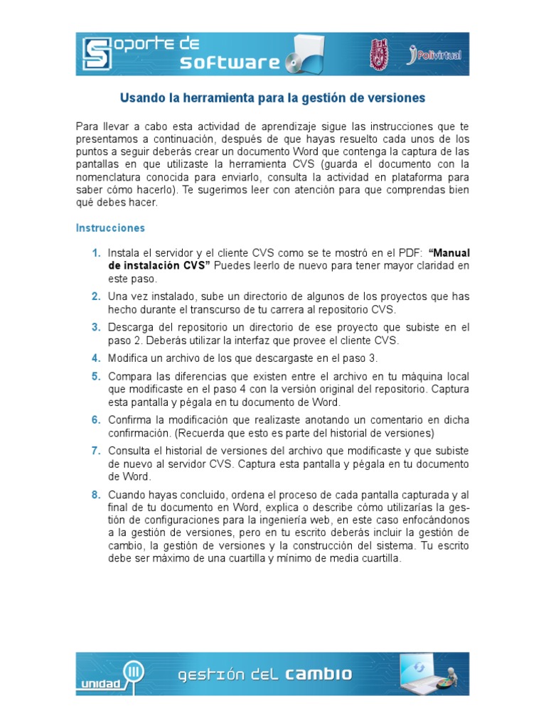 Confirmar la modificación: Esto implicaría usar el comando cvs commit para enviar
