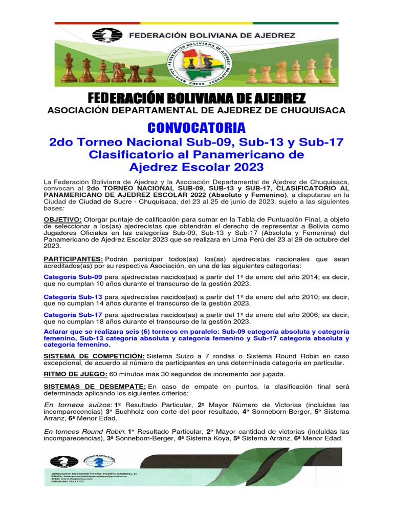 AUTORIDADES DEL TORNEO: Serán designadas por la Federación Boliviana de Ajedrez y la