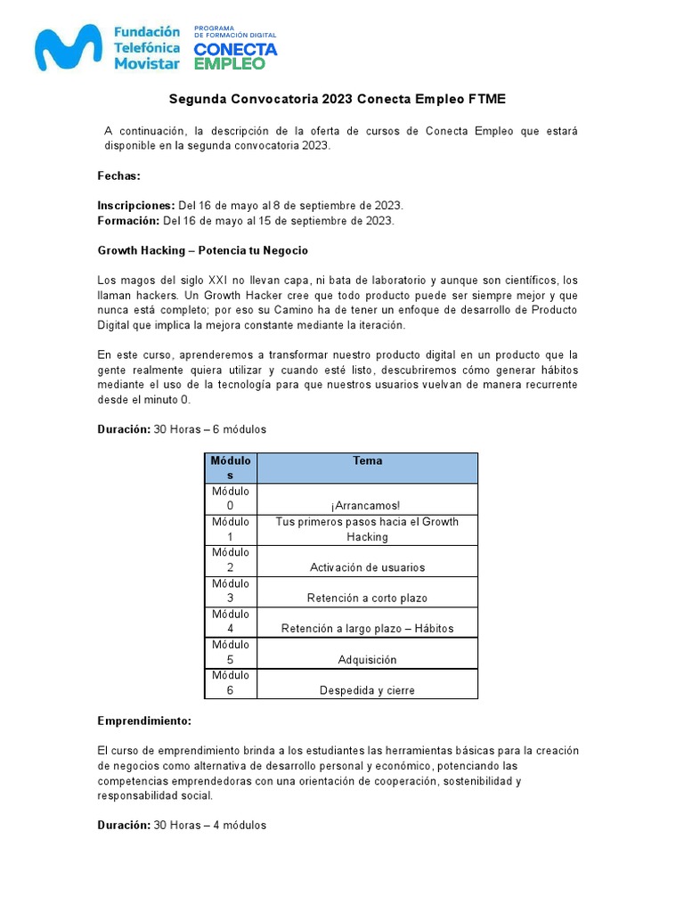 Segunda Convocatoria 2023 Conecta Empleo FTME