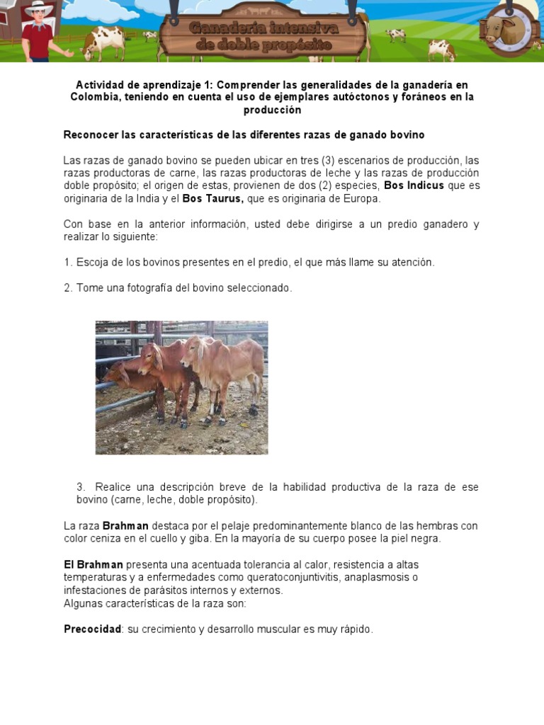 Actividad de aprendizaje 1: Comprender las generalidades de la ganadería en