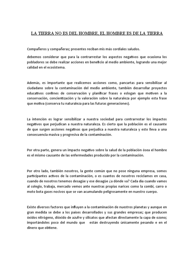 LA TIERRA NO ES DEL HOMBRE, EL HOMBRE ES DE LA TIERRA