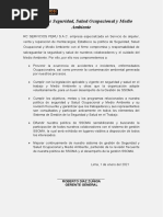 El documento de la Política de SST se firmada,